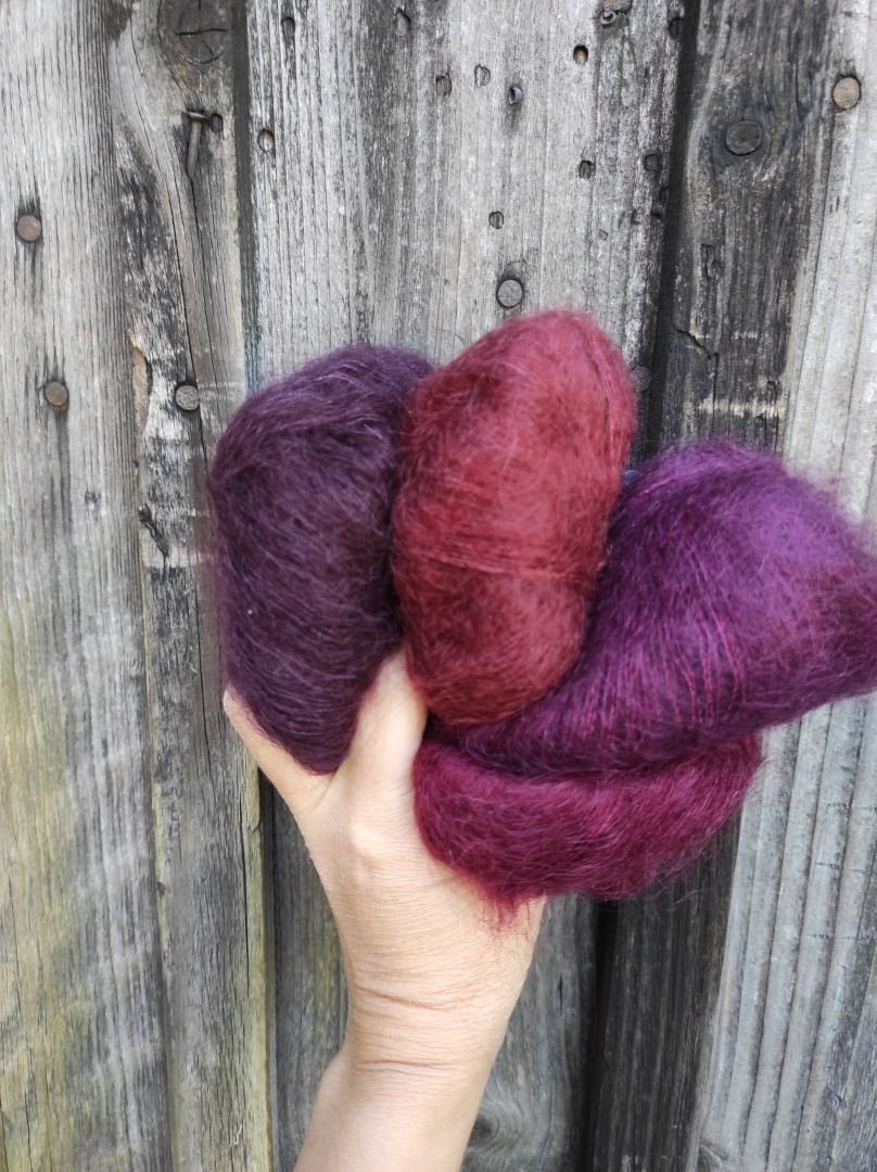 ALTERNATIVGARN: gleiche Menge: DROPS Kid Silk (75% Mohair Super Kid, 25% Maulbeerseide, 25g / Knäuel = 210 Meter)