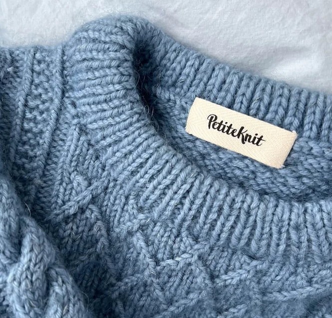 Ein gewobenes Petiteknit-Label das an den Seiten angenäht wird. Perfekt, um kennzuzeichnen wo beim Pullover hinten und vorne ist ;)